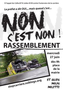 saint julien- molin- molette (42220) rassemblement le 27 juin 2018 devant la mairie contre la carrière