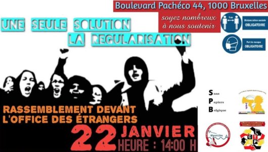 Le Vendredi 22 Janvier à 14h, devant l’office des étrangers Adresse : Boulevard Pachéco 44, 1000 Bruxelles.